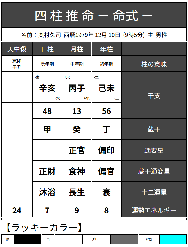 鳥海流四柱推命鑑定ではラッキーカラーが何色かという鑑定が命式と共に